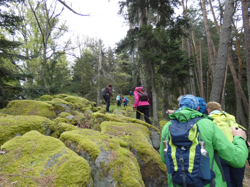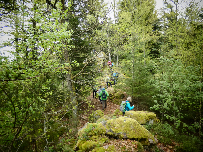 Die Wanderung führte uns vom Wanderparkplatz am Sportplatz in Forbach über den Kuckucksfelsen zum Eckkopf, weiter entlang des Sasbachs, vorbei an Hütten und Wasserfällen in Richtung des Latschigfelsen. Von dort mit Blick auf Forbach ging es zurück zum Ausgangspunkt.