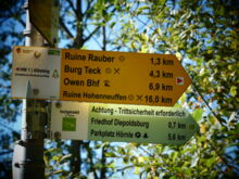 Zuerst ging es hoch auf den Breitenstein wo wir die Aussicht bis weit über Stuttgart genießen konnten. Danach ging es weiter durch Ochsenwang zur Ruine Rauber. Über den Sattelbogen, gelben Felsen gelangten wir zur Burg Teck. Übers Hörnle gingen wir dann wieder Talwärts zu unserem Ausgangspunkt nach Bissingen.