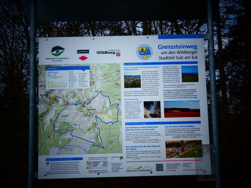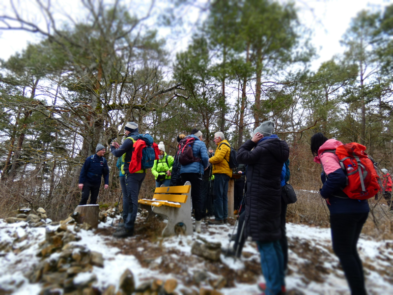 Wir folgten dem Gäurandweg mit Ausblick ins Nagoldtal, vorbei am ehemaligen Munitionsdepot. Durch den Seewald und an der Grenze zu Oberjettingen vorbei führte der Weg im Tal wieder in Richtung Sulz. Nochmals ansteigend hatte man einen schönen Blick auf den Ort, bevor wir dann die Grenzen von Kuppingen erreichten. Wieder im Wald kamen wir an den Rand des Steinbruchs und erreichen dann auch bald wieder unseren Ausgangspunkt, den Wanderparkplatz Häseleck. Zum Abschluss des Tages kehren wir noch im Sportheim Sulz am Eck ein.