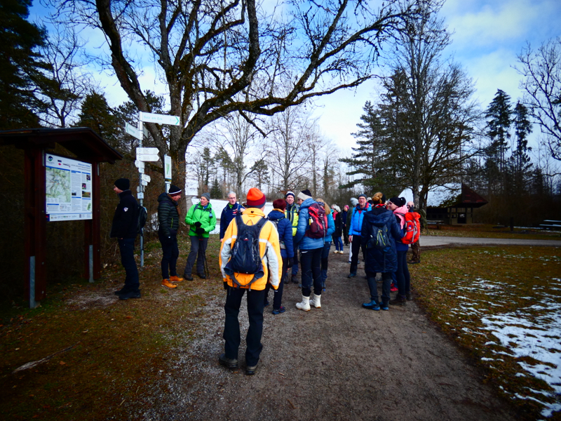 Wir trafen uns um 10:45 Uhr am Gemeindehaus in Deckenpfronn und fuhren gemeinsam zum Startpunkt, dem Wanderparkplatz Häseleck, oberhalb von Sulz am Eck. Der Weg führt zuerst talwärts in den Ort und dann vom ehemaligen Waschhäusle aus wieder aufwärts zum Sulzer Eck.