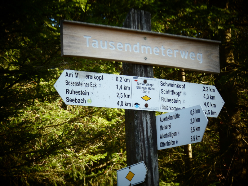 Nahe dem Parkplatz Vogelskopf oberhalb des Naturparkzentrums starteten wir unsere Tour. Wir bogen auf den Westweg ein und wandern auf diesem bis zum Schliffkopf, der mit 1055 m. ü. NN. höchsten Punkt der Tour war. Danach führte der Weg uns teils steil bergab bis zum unteren Eingang der Allerheiligen Wasserfälle. Auf steilen Stufen entlang der Kaskaden erreichten wir bald das ehemalige Kloster. Von dort wanderten wir weiter bergauf bis zum Ausgangspunkt unserer Tour. Die länge der Tour betrug 18 km und ca. 600 Höhenmeter.