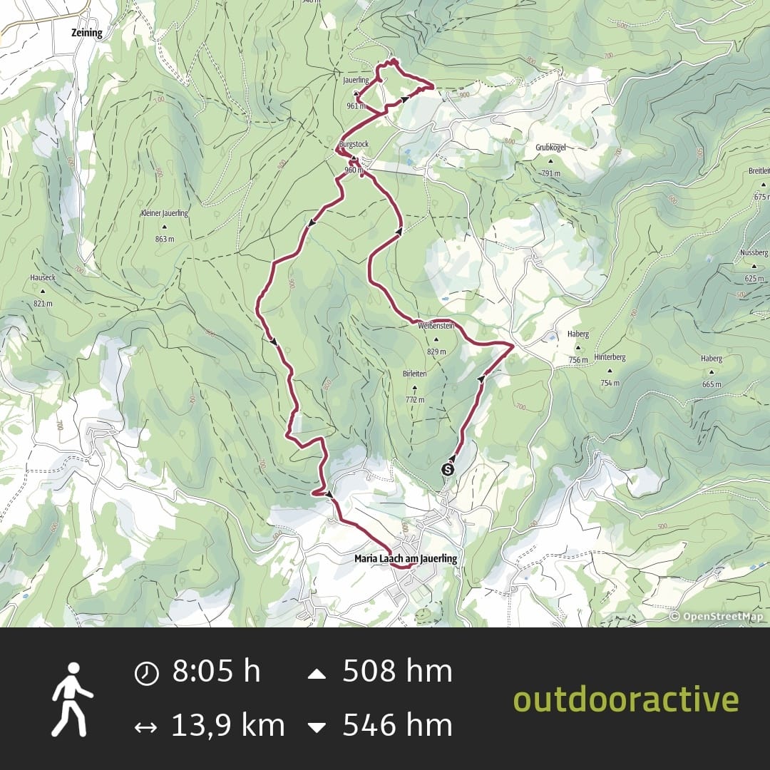Rundwanderung auf und um den Jauerling mit Aussicht auf Spitz - Donautal - Maria Laach. Strecke ca. 14 km.